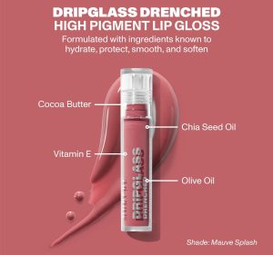 GET GLAZED & GLISTENING. Glide on juicy. semi-sheer. nourishing color with Dripglass Glazed High Shine Lip Gloss. This buildable formula—infused with plant-derived squalane and vitamin E—provides hydrating wear with a nonsticky feel. Available in two finishes. it glazes lips in glass-effect or naturally shimmering shine. Wear it on its own or layered over lip liner or lipstick.
