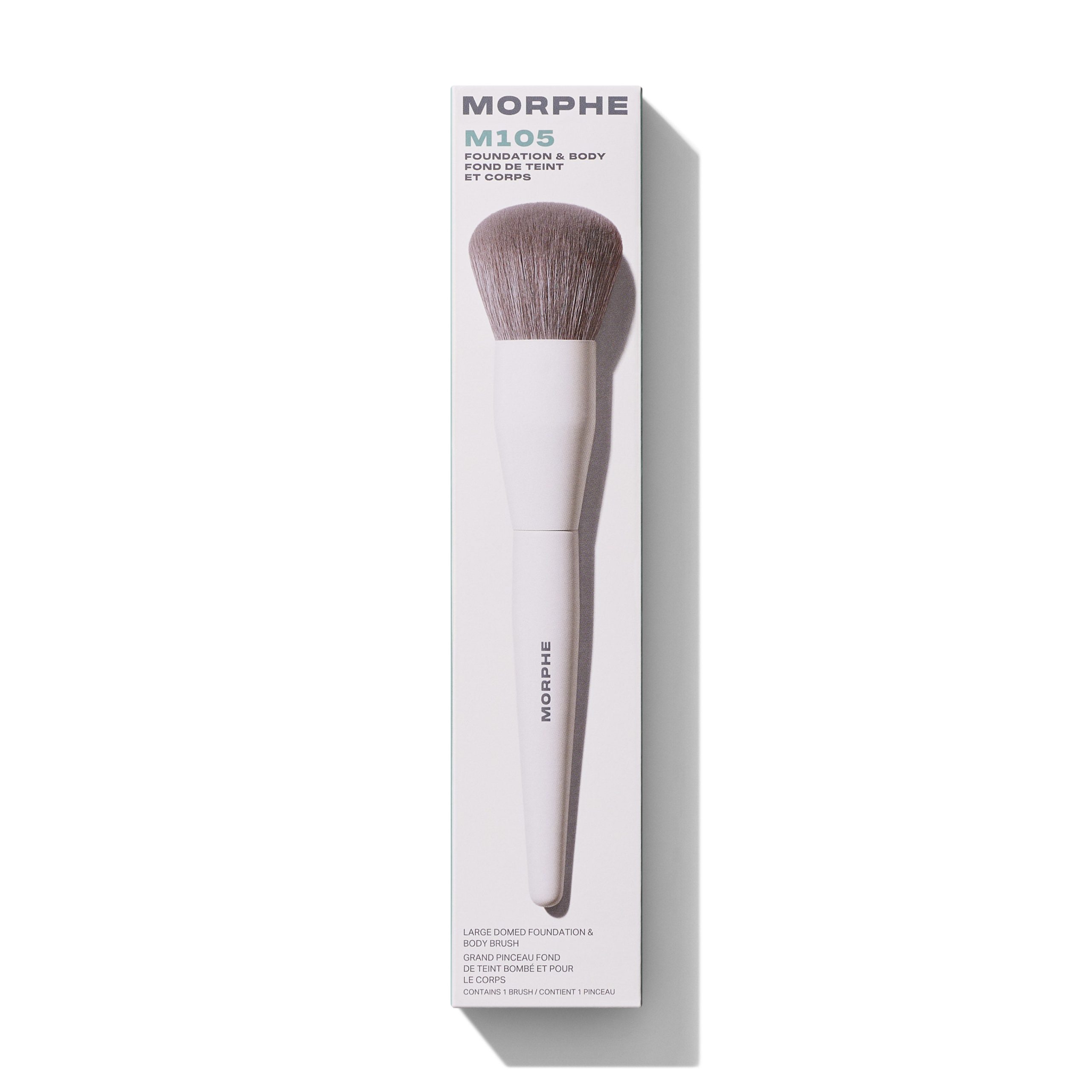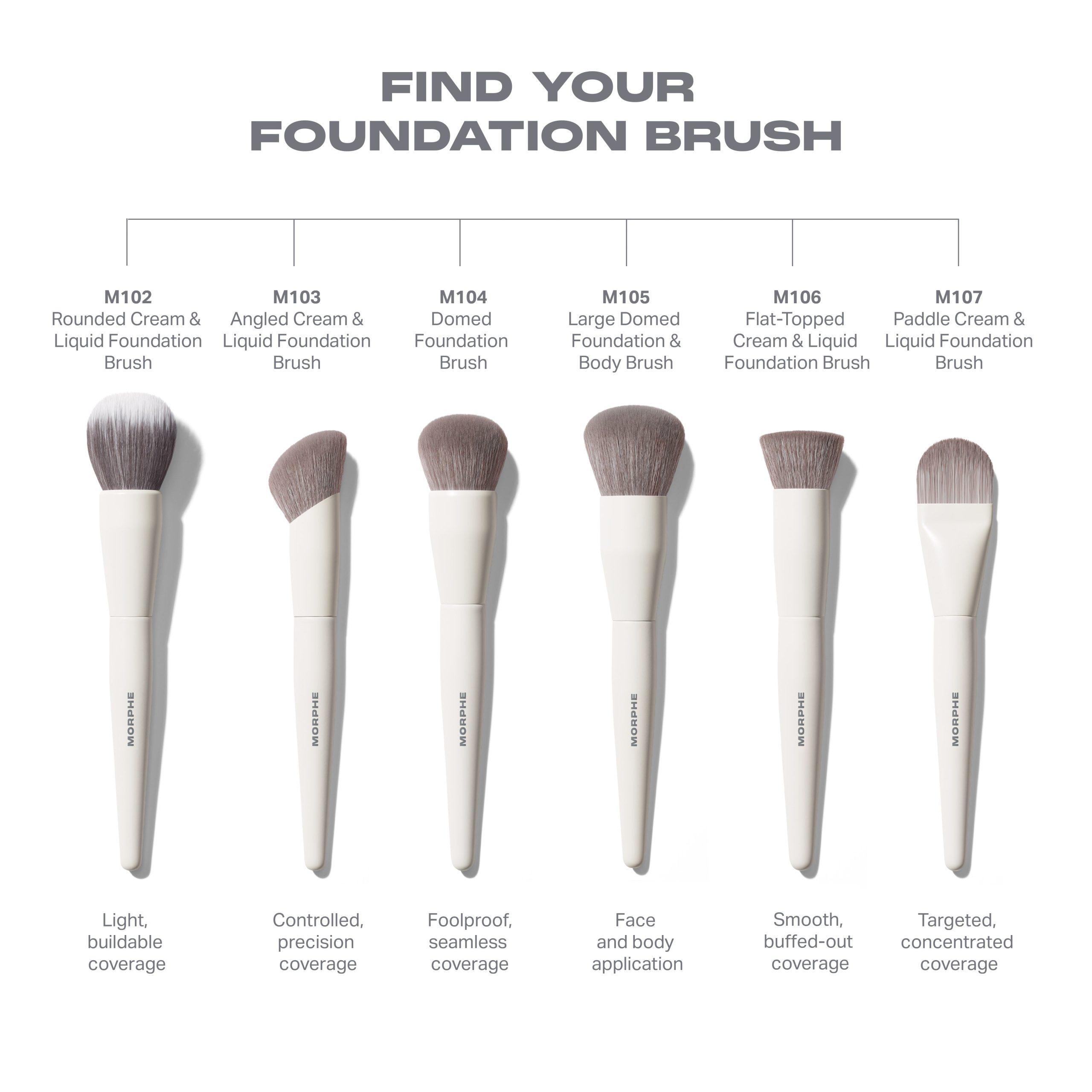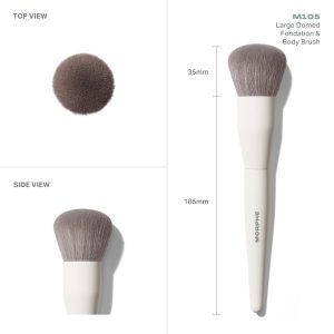 The supersoft. supersized head of the M105 Domed Foundation & Body Brush quickly covers a lot of surface. Use it to apply foundation across your forehead and cheeks—and to add highlighter and bronzer to your neckline. décolleté. and arms.