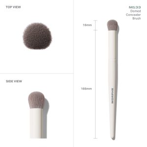The M133 Domed Concealer Brush takes the might of our M104 foundation brush and makes it mini for effortlessly applying and building concealer. The plush surface fans out on contact to effortlessly disperse product. while the rounded edges seamlessly blend in hard-to-reach areas.