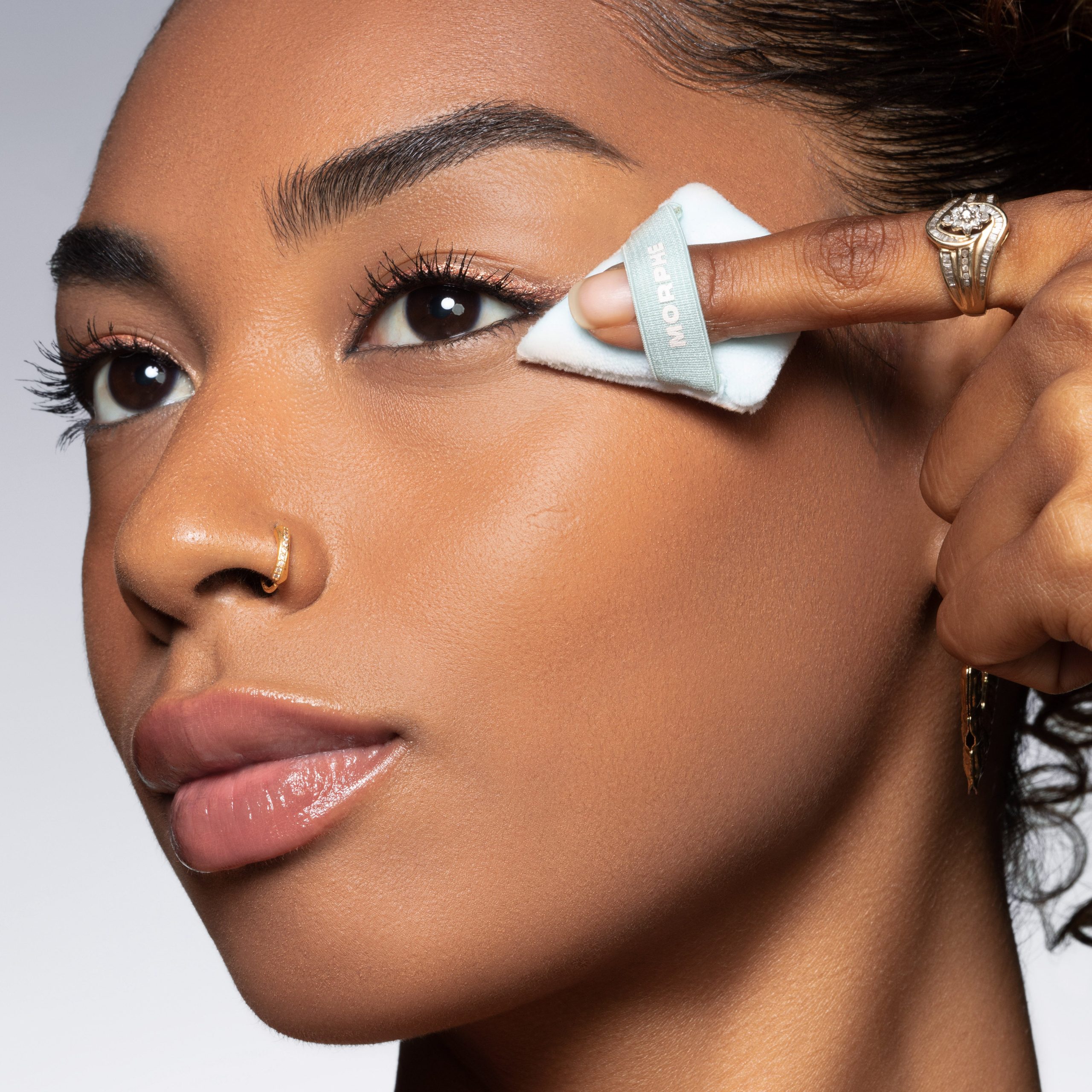 The To the Point Dual-Sided Powder Puff is your two-in-one puff. It features a plush side that applies powders and a sponge side that applies liquids and creams. Use the diamond shape for both overall and precision techniques: the surface flexes to conform to the contours of your face. while the tip zeroes in on your undereyes. Includes a reversible elastic band for a controlled hold.